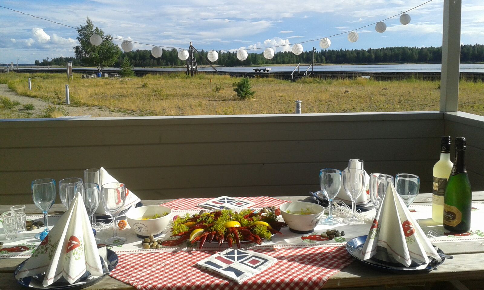 Olimme sopineet jo etukäteen S/Y Hanhen kanssa yhteisestä päivällisestä lauantaille. Asetuimme Röytän Messin eli kesäkeittiön terassille. Keularuoaksi napsimme rapuja ja varsinaiseksi chef Lotinan paellaa, joka todella on mielettömän hyvää. Niin oli tälläkin kertaa.